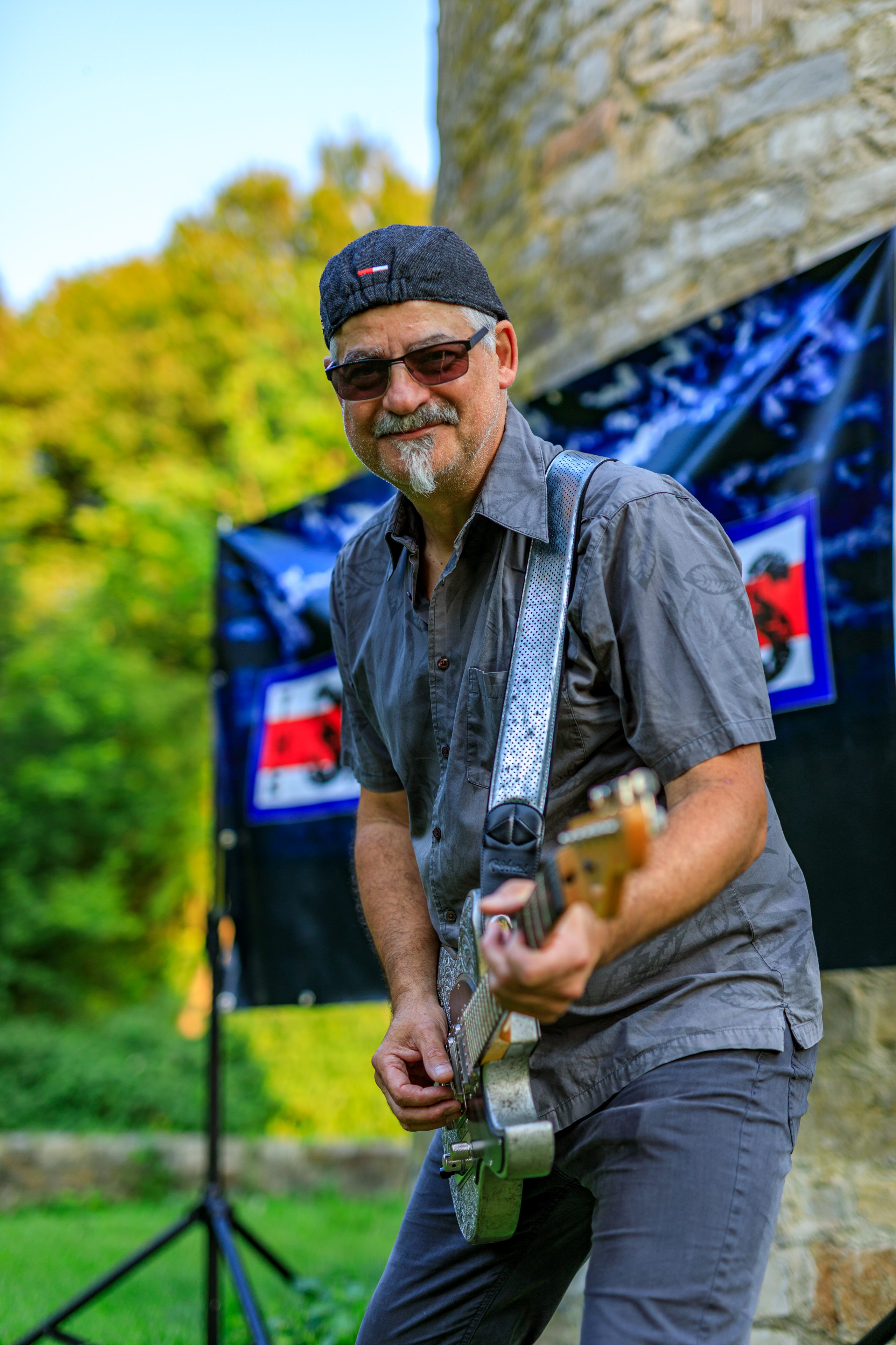 Ich spiele E-Gitarre (‚Dellatera‘ von Dean Zelinsky - eine Tele Customs Made nur für mich, ‚Memphis‘ - eine japanische Double-Cutaway-Gibson-Les-Paul-Kopie aus den 70ern, eine super abgehangene Epiphone LesPaul Special (Korea, 1998), eine CORT McSwain1 ‚Motor Oil‘, und die ‚JuBi‘-Strat zum 60sten) und habe auch zwei sehr schöne akustische Westerngitarren: Matwood DV-2 und ESP LTD D320.“